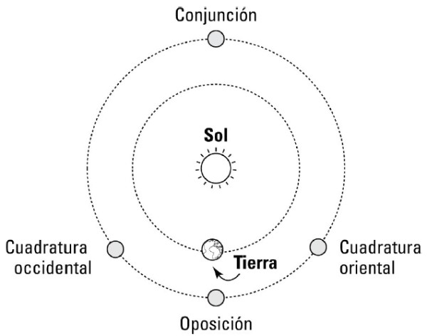 El mejor momento para observar un planeta superior es cuando la Tierra se interpone entre él y el Sol. En cambio, es más difícil de ver cuando está en conjunción, al estar más lejano a la Tierra y cerca del Sol, que lo opaca. La situación se describe gráficamente en la siguiente imagen: