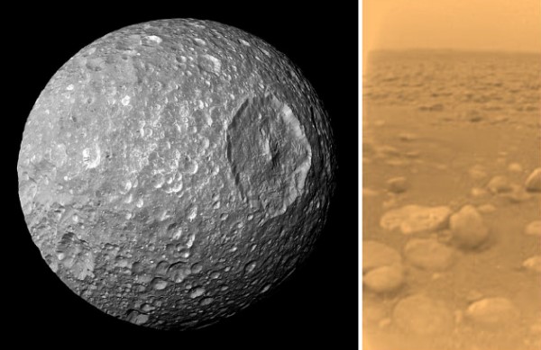 Como parte de la misión Cassini a Saturno, la sonda Huygens logró aterrizar sobre la superficie de Titán y encontró una superficie congelada, pero repleta de accidentes geográficos.