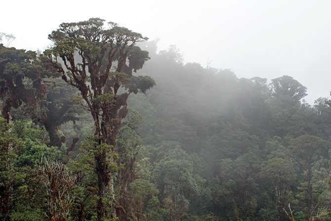 La selva nublada de la cordillera de Los Andes se extiende desde los 900 msnm hasta los 3.600 msnm. Las selvas tropicales más occidentales de África se desarrollan en planicies onduladas entre los 50 y los 500 msnm.