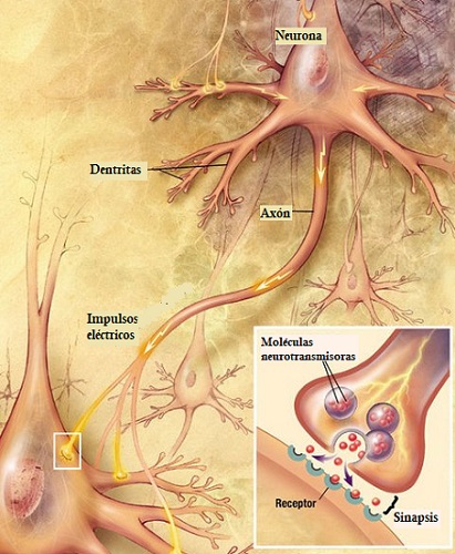 Las neuronas se comunican mediante sinapsis, y se transmiten mensajes mediante la liberación de neurotransmisores. Estas sustancias químicas se difunden en el espacio líquido existente entre los botones terminales y las membranas que establecen las sinapsis.