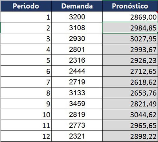 Como se puede ver, las únicas entradas de datos necesarias son la demanda y el pronóstico del período más reciente.