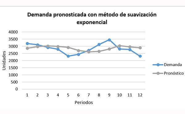 El suavizamiento exponencial es una forma de pronosticar la demanda de un artículo para un período dado. Este método calcula que la demanda será igual al promedio de los consumos históricos en un período determinado, dándole un mayor peso o ponderación a los valores que se encuentren más cercanos en el tiempo. Adicionalmente, para los siguientes pronósticos toma en cuenta el error existente del pronóstico presente.