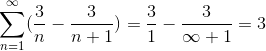 Donde al dividir entre un número muy grande, el resultado se aproximará cada vez más a cero, observándose la convergencia de la serie al valor 3.