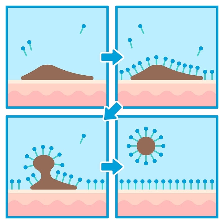 Mecanismo para eliminar suciedad de la piel con un surfactante