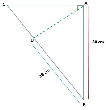 Dado el triángulo ABC, rectángulo en A, determinar la medida de AC y AD, si AB = 30 cm y BD = 18 cm