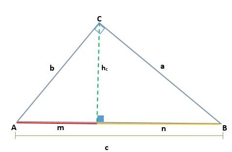 Dado un triángulo ABC, que es rectángulo en el vértice C, de tal forma que su hipotenusa es c, al trazar la altura (h) se determinan las proyecciones de los catetos a y b, que son los segmentos m y n respectivamente, y que se encuentran sobre la hipotenusa.