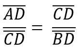 Así, se tiene que la altura trazada sobre el triángulo rectángulo ABC genera dos triángulos rectángulos semejantes, ADC y BCD, de forma que los lados correspondientes son proporcionales, así: