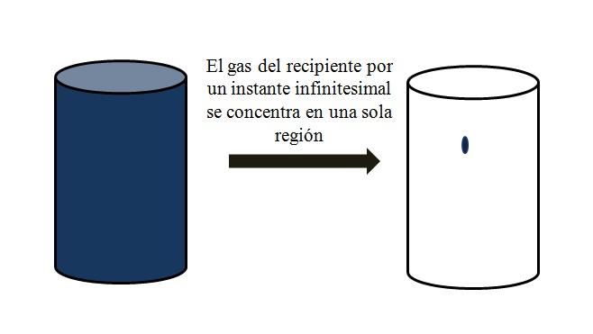 Si las partículas gaseosas dejaran de moverse por un instante, se presenciaría dentro del recipiente “lenguas de humo”, surgidas de la nada, con el tiempo suficiente para ordenarse en el vacío y dar formas aleatorias.