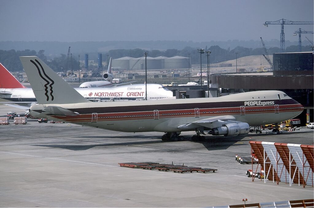 Boeing 747 del People Express, 1983. Fuente: Eduard Marmet, CC BY-SA 3.0 GFDL 1.2, via Wikimedia Commons