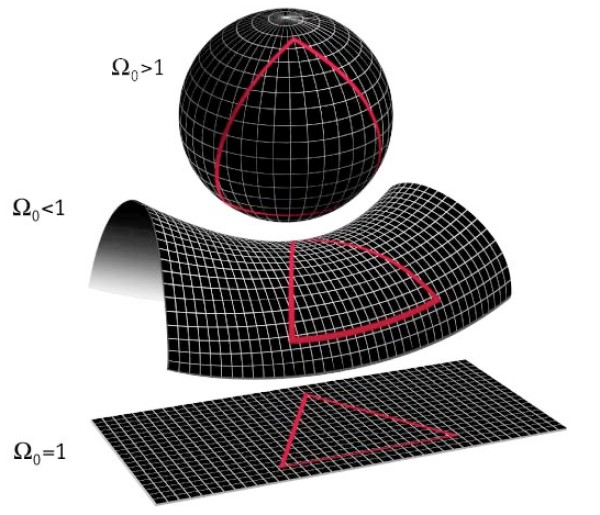 Las tres soluciones de Friedmann conducen a tres modelos del Universo: uno cerrado, otro abierto y un tercero plano. Las posibilidades que ofrecen estas tres soluciones son: