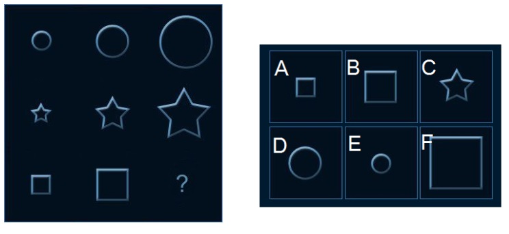 3. La F es la opción correcta. Vea cómo las figuras aumentan su tamaño de izquierda a derecha.