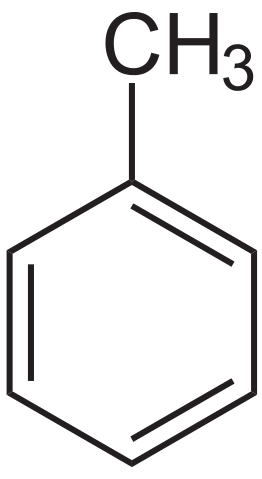 El tolueno es un hidrocarburo aromático cuya fórmula condensada es C6H5CH3 o PhCH3 y que consiste de un grupo metilo (CH3) unido a un anillo bencénico o grupo fenilo (Ph). Se encuentra naturalmente en el petróleo crudo, en el carbón, en las emanaciones volcánicas y en algunos árboles, como el árbol tolú de América del Sur.