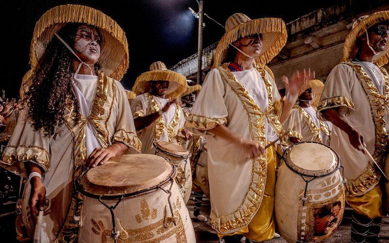Esta fiesta deviene de la cultura africana y española, y empieza con un desfile que se realiza en la avenida 18 de julio, una de las principales vías de Montevideo, capital de Uruguay. Allí desfilan escuelas de samba, humoristas, carrozas y reinas de carnaval, entre otros personajes llamativos.