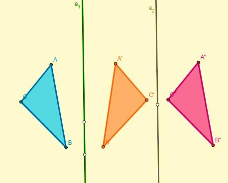 - Si se aplican dos simetrías con respecto a dos ejes paralelos el resultado será una traslación, y su desplazamiento es el doble de la distancia de esos ejes: