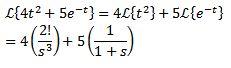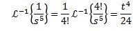 Para resolver este ejercicio debemos hacer coincidir la función F(s) con alguna de la tabla anterior. En este caso, si tomamos a n + 1 = 5 y usando la propiedad de linealidad de la transformada inversa, multiplicamos y dividimos por 4! Obteniendo