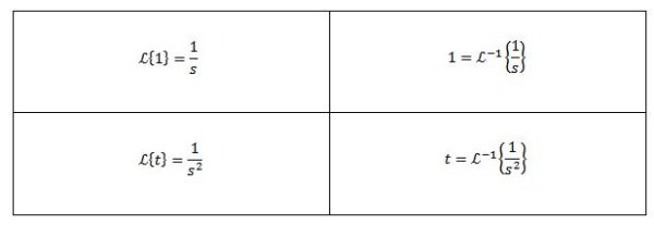 Sabemos que las transformadas de Laplace de f(t) = 1 y g(t) = t son F(s) = 1/s y G(s) = 1/s2 respectivamente, por lo tanto tenemos que