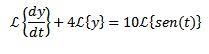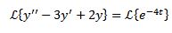 Aplicamos la transformada de Laplace a cada miembro de la ecuación diferencial