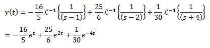 Finalmente, nuestro objetivo es encontrar una función y(t) que satisfaga la ecuación diferencial. Usando la transformada de Laplace inversa nos da como resultado