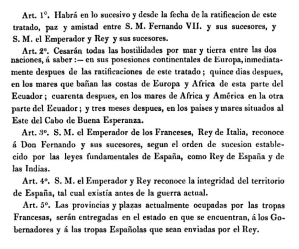 Tras unas semanas de diálogo, el documento quedó cerrado el 8 de diciembre de ese mismo 1813 y fue firmado el día 11. Mediante el mismo, Napoleón declaraba finalizadas las hostilidades en España, así como la vuelta de Fernando VII al trono.