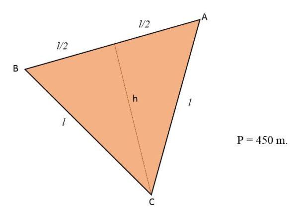 Sabiendo que el perímetro de un triángulo corresponde a la suma de sus tres lados y como el terreno tienen forma de triángulo equilátero, los tres lados de este tendrán la misma medida o longitud: