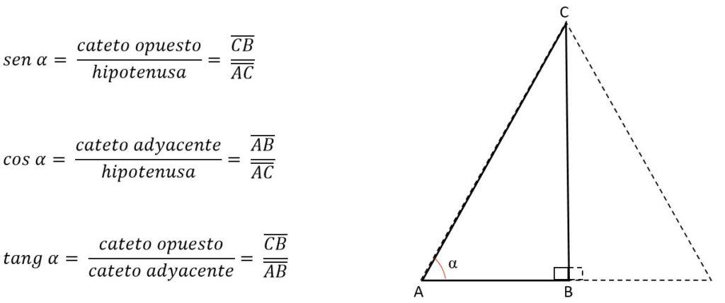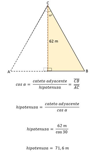 A partir de esos datos puede determinarse el valor de uno de los lados del triángulo, usando las razones trigonométricas: