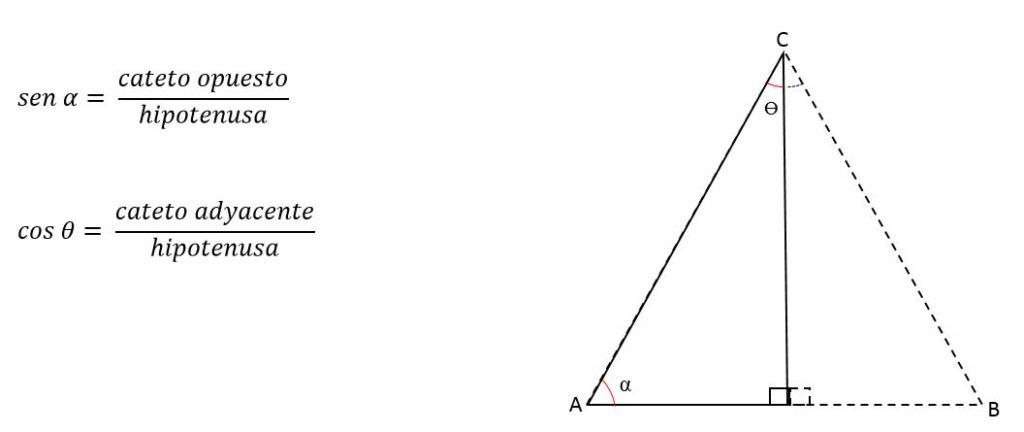 Si es conocido el ángulo que forman los lados congruentes, la altura (representada por un cateto), puede ser calculada aplicando las razones trigonométricas.