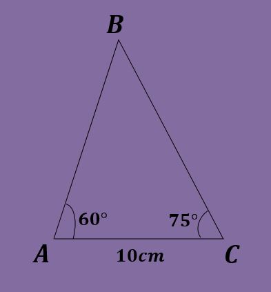 Dado el triángulo ABC tal que A=60º, C=75º y b=10cm, calcule los demás datos del triángulo.