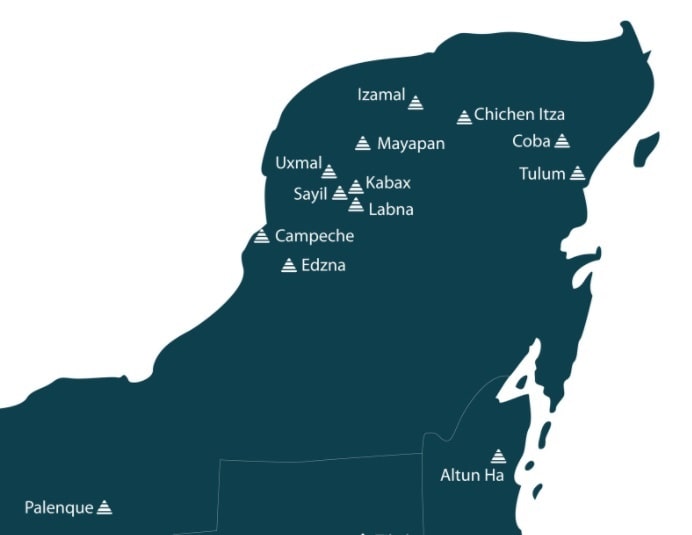 Principales ubicaciones de los mayas en México