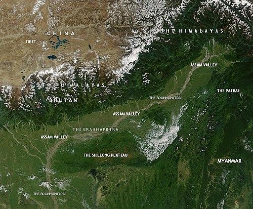 Un ejemplo de valle longitudinal lo constituye el valle Assam, en la cuenca del río Brahmaputra (ver la imagen siguiente), el cual se ubica entre el Himalaya y las planicies de Shillong y Karbi Anglong.