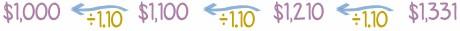 Para saber lo que el dinero en el futuro vale actualmente, se calcula hacia atrás, dividiendo entre 1,10 cada año, en lugar de multiplicar.