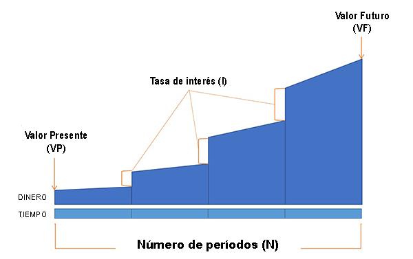 Con base en estas variables, la fórmula para el valor del dinero en el tiempo sería la siguiente: