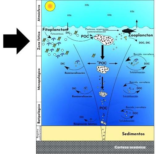 Cuando la luz solar penetra en el agua de mar va atenuándose debido a dos procesos: el de absorción y el de difusión. Estos dos procesos dependen de la cantidad de partículas suspendidas en la columna de agua, pero en líneas generales hacen que ya a los 50 m de profundidad la radiación incidente de la luz solar se haya atenuado en un 50%.