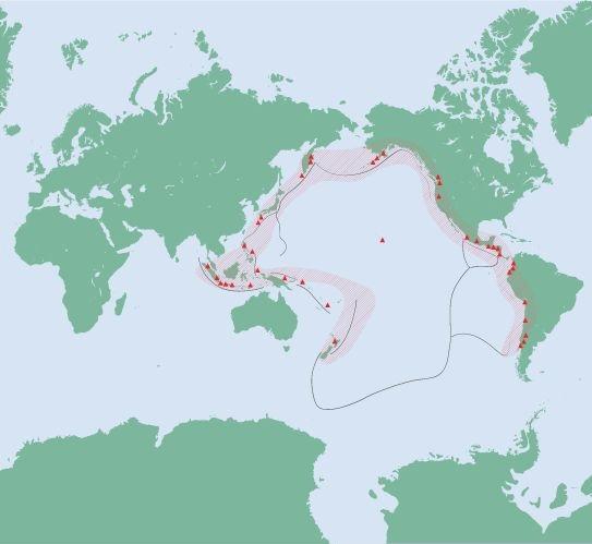 La primera de estas es la mayor del mundo, ya que supone entre el 80% y el 90% de la energía sísmica del planeta. Se le conoce también por el nombre de anillo de fuego del Pacífico.
