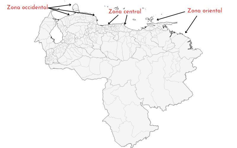 Las zonas pesqueras principales de Venezuela